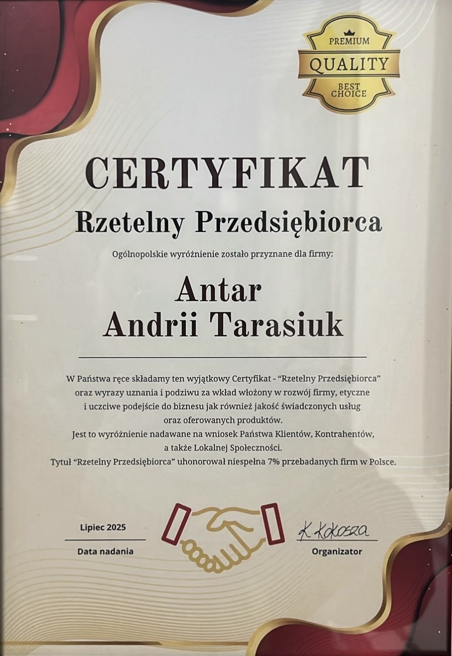 Posiadamy nie tylko niezbędne licencje i uprawnienia. Możemy pochwalić się także licznymi certyfikatami, dyplomami i nagrodami. Hydraulika to nasza pasja. Rozwijamy nasze umiejętności ze szczerą chęcią, czego potwierdzeniem są m.in. poniższe wyróżnienia.